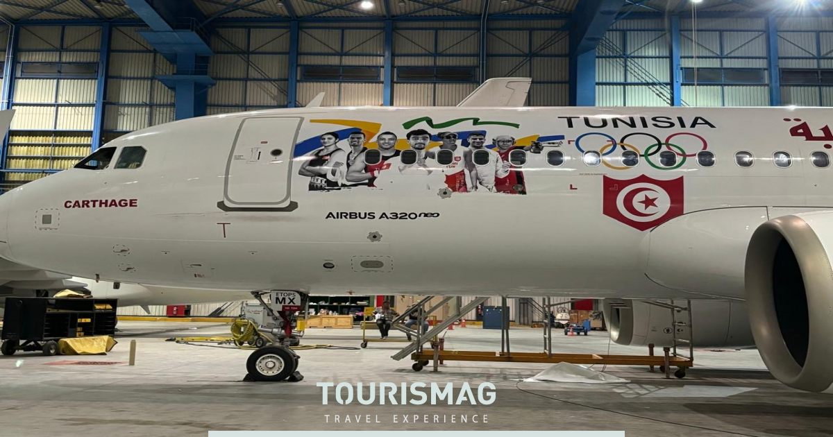 Le 5 juillet 2024, Tunisair a révélé avec fierté son nouvel Airbus A320Neo, baptisé "Carthage" arborant les couleurs vibrantes de Paris 2024 et les portraits des athlètes tunisiens.